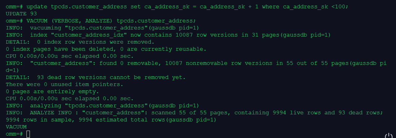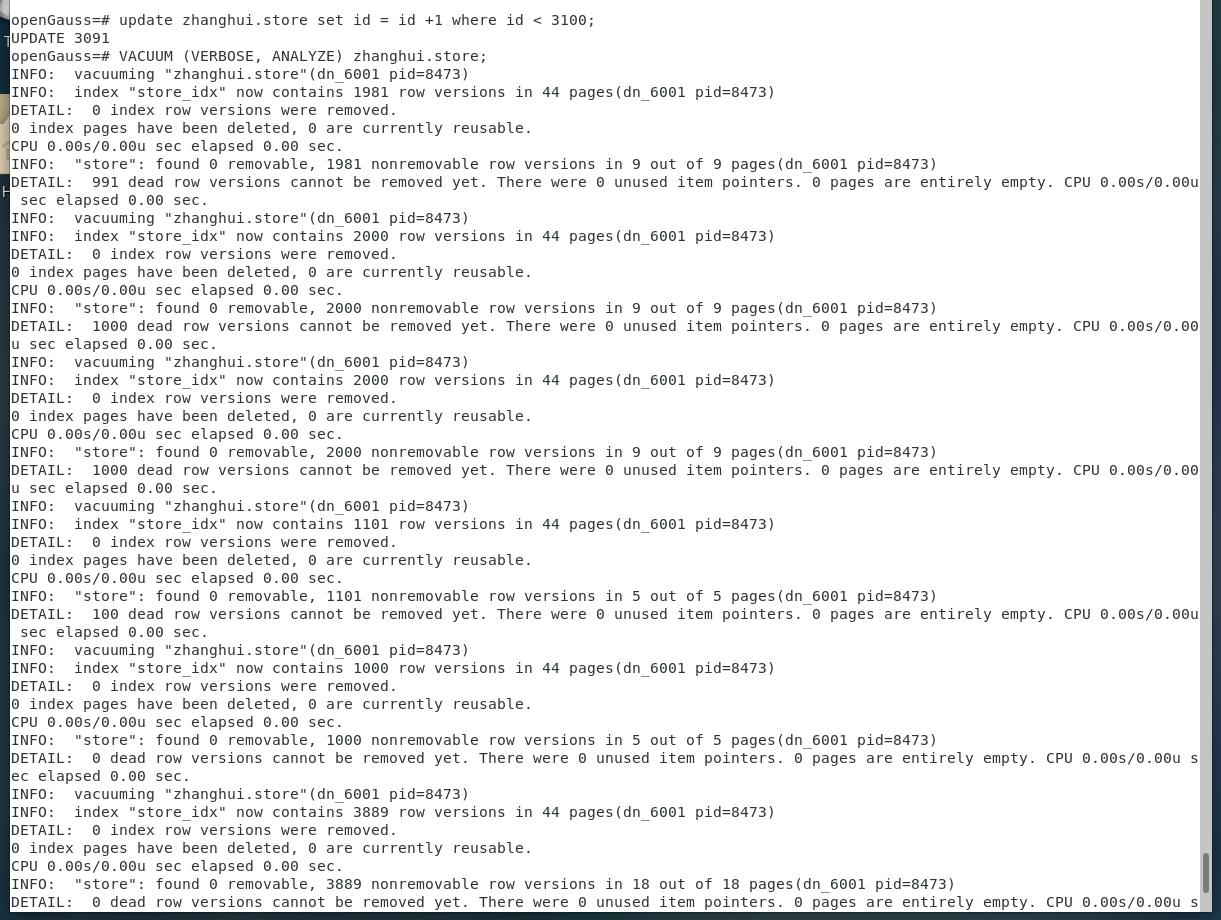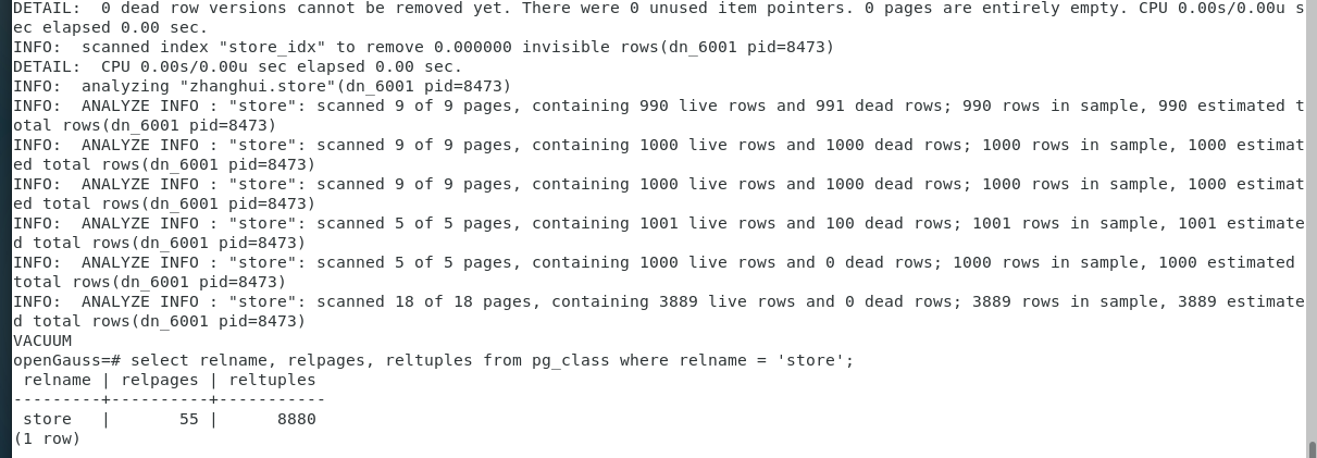 VACUUM (VERBOSE, ANALYZE) zhanghui.store;