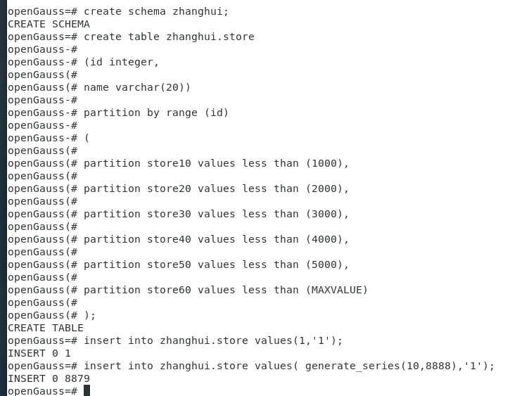 1.创建分区表,并用generate_series(1,N)函数对表插入数据
