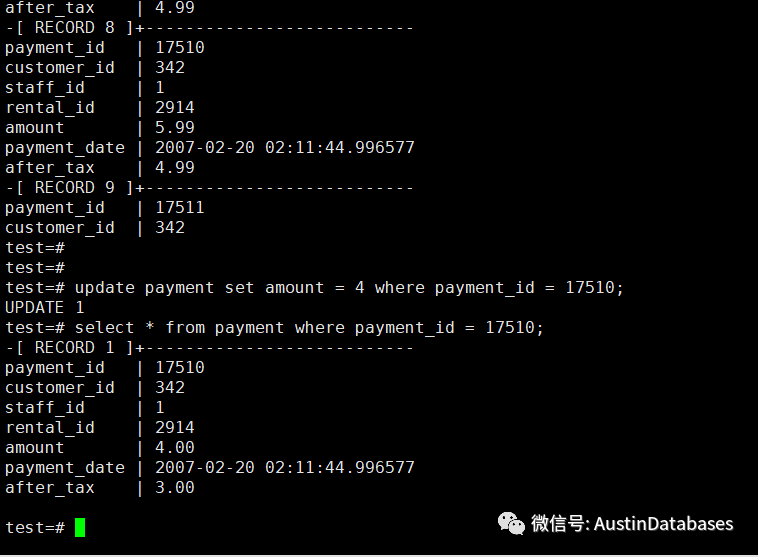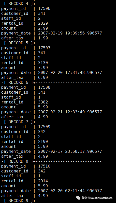 当然看上去好像也没有什么用,我们看下一个例子,表payment 中 amount 记录这每次顾客付出的租金,而实际上如果要计算一个扣除税的金额,并加载到表中就比较麻烦了。