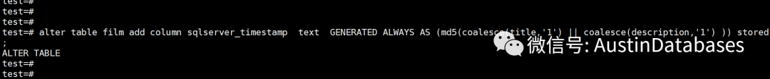 alter table film add column sqlserver_timestamp text GENERATED ALWAYS AS (md5(coalesce(title,'1') || coalesce(description,'1') )) stored;