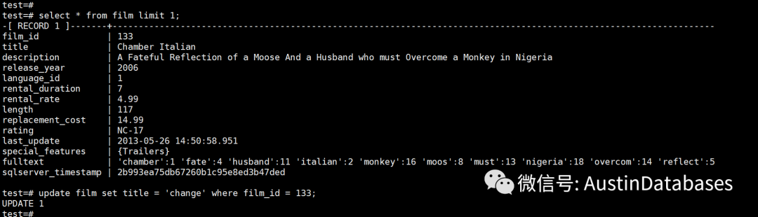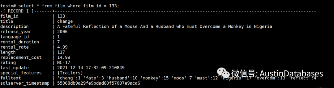 3 查询film表中的 sqlserver_timestamp 行的值,与之前的值是否有变化