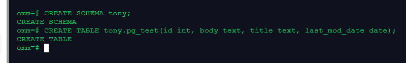 CREATE TABLE tony.pg_test(id int, body text, title text, last_mod_date date);
