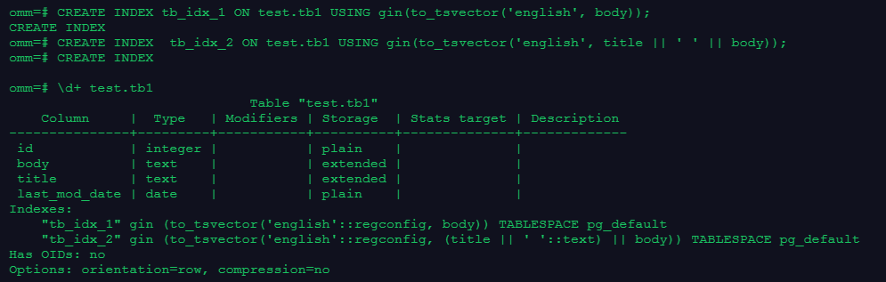 CREATE INDEX tb_idx_1 ON test.tb1 USING gin(to_tsvector('english', body));