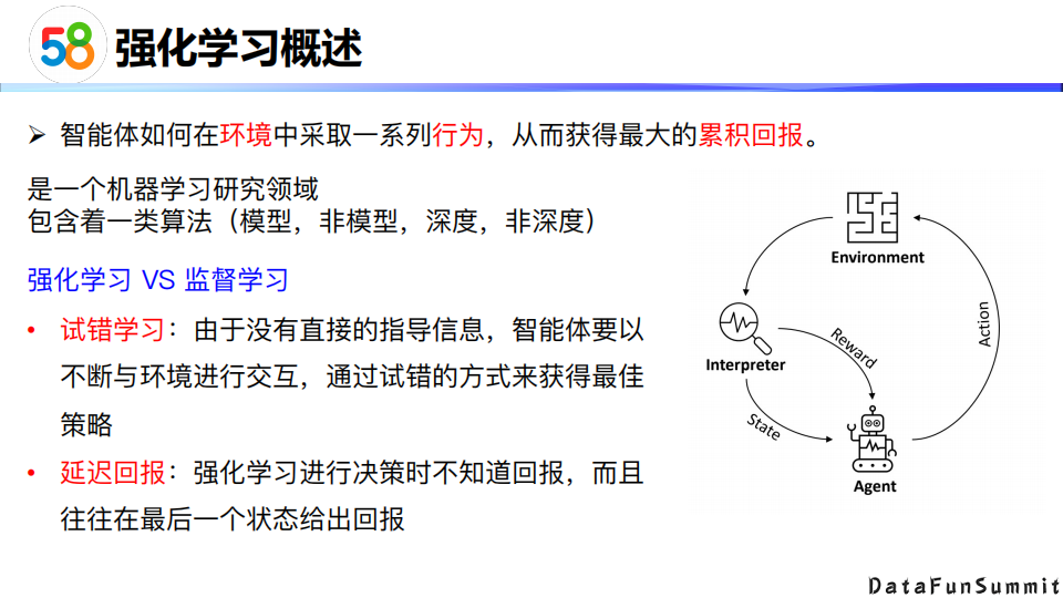 其实在不同业务场景上都有类似的问题,其关键点是如何利用现有信息和用户行为进行个性化推荐,我们考虑通过强化学习的思路和方法来解决这两个问题。下面简单介绍一下强化学习。