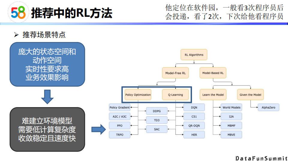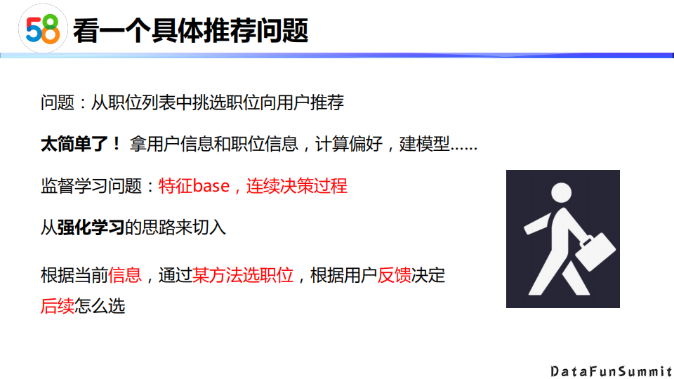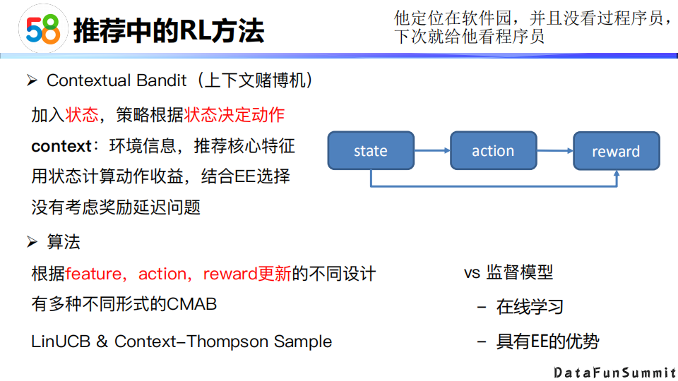 现在回到我们58的业务问题上去,详细介绍一下在58招聘场景针对冷启动问题实现的一个单步强化学习算法。
