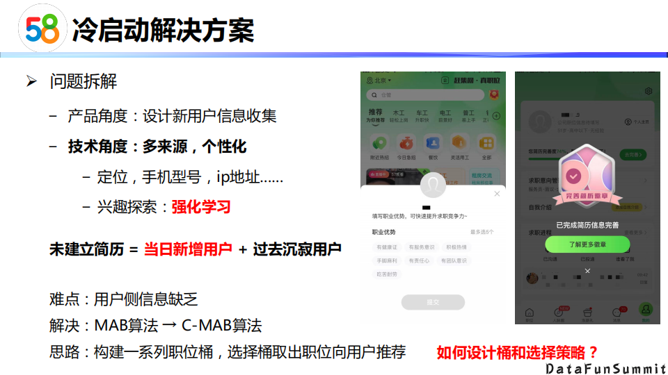 A:我们对用户的划分还是比较简单的。因为我们关注的用户群体是实际上没有建立简历的用户,所以强化学习算法线上面对的用户范围是这些没有建立简历的冷启动用户。