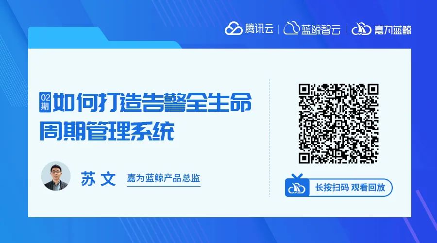 上周四,嘉为蓝鲸产品总监苏文老师为我们带来了精彩直播,从告警管理建设的现状挑战、体系介绍、如何建设告警管理平台、告警管理的业务场景四个方面阐述了《如何打造告警全生命周期管理系统》这一主题。