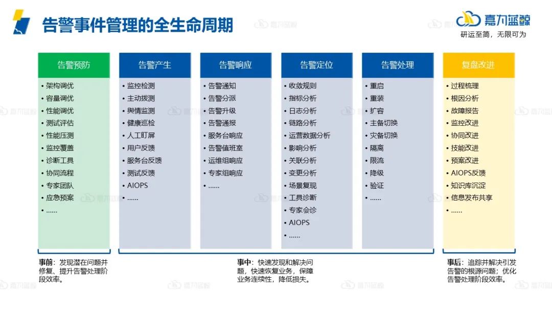 ● 事后追踪并解决引发告警的根源问题,优化告警处理阶段效率。