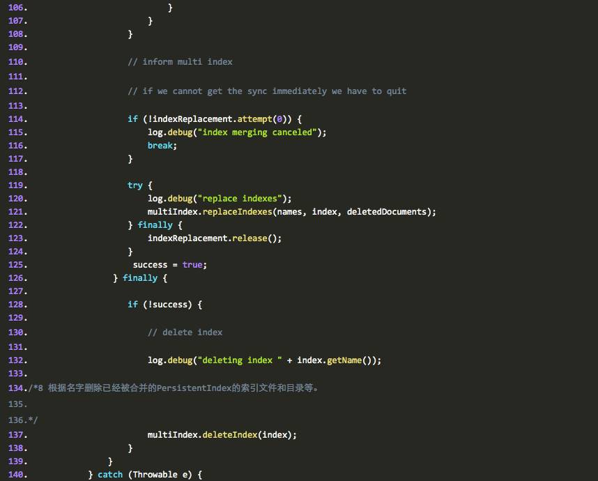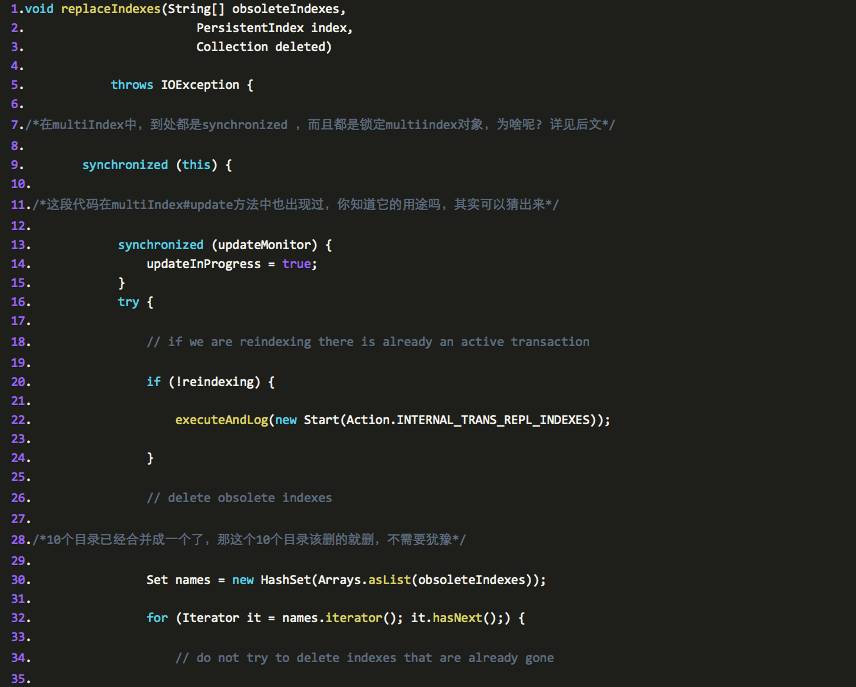 我们看到在上面的 run 方法中,我们有一个方法没有讲到: multiIndex .replaceIndexes(names, index, deletedDocuments );