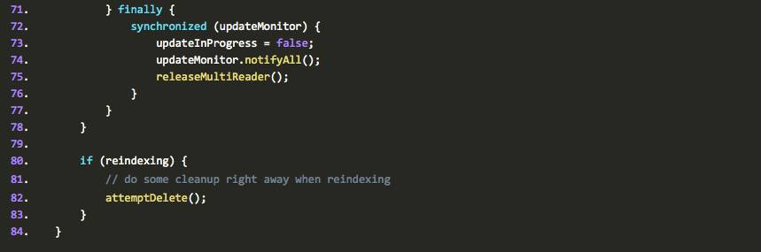 /* obsoleteIndexes 是需要被删除的 dir ,因为他们的数据已经被合并到新的目录里, index 参数则表示那个对应那个新目录的 PersistentIndex , deleted 表示需要被删除的类 */