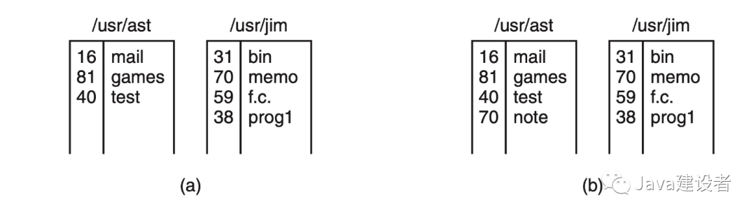 系统调用的话,其中一个会被移除,另一个将保留。如果两个文件都移除了,则 UNIX 会发现该文件不存在任何没有目录项(i-节点中的一个域记录着指向该文件的目录项),就会把该文件从磁盘中移除。