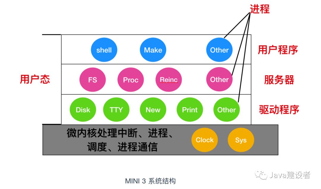 所以,为了实现高可靠性,将操作系统划分成小的、层级之间能够更好定义的模块是很有必要的,只有一个模块 --- 微内核 --- 运行在内核态,其余模块可以作为普通用户进程运行。由于把每个设备驱动和文件系统分别作为普通用户进程,这些模块中的错误虽然会使这些模块崩溃,但是不会使整个系统死机。
