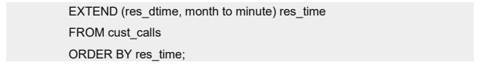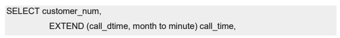 在下列查询中,EXTEND 函数仅显示指定的子字段以限制两个 DATETIME 值。