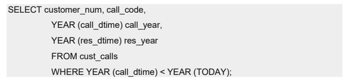 下列查询检索 call_dtime 比当前年份的开始早的行。