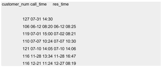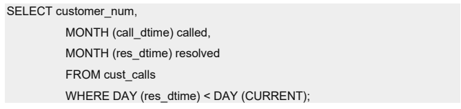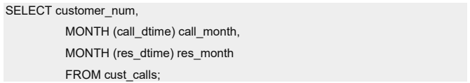 下列查询使用 MONTH 函数来抽取和显示在哪个月份接收和处理客户来电,并且它将对结