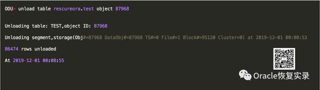 这种方式的原理是直接指定dataobj#来进行抽取,抽取依据是扫描出来的ext.odu,具体应该使用哪个dataobj#,之前几篇文章有介绍可以通过logminer或者redodump来获取。