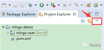 对于有强迫症的小伙伴来说,既然图中mingx-user是mingx-demo的子项目,为什么它不在其下面,而是与父项目平行的,为了解决这个尴尬,可以在STS中做如下设置: