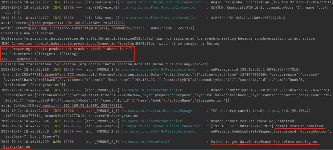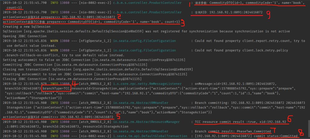 7.成功Commit测试:依次启动:Nacos-->SeataServer-->storage