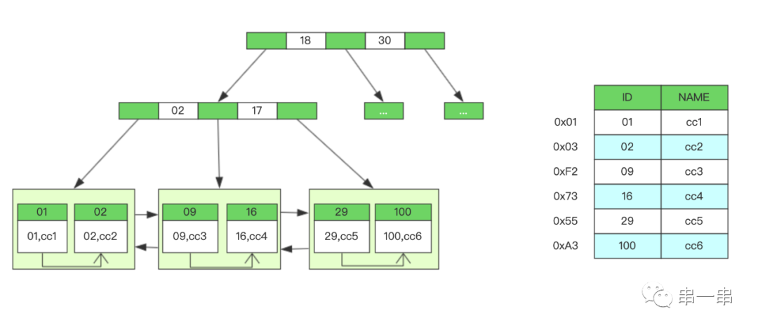非叶子节点不保存关键字记录的指针,只进行数据索引,这样使非叶子节点能保存大量的关键字
