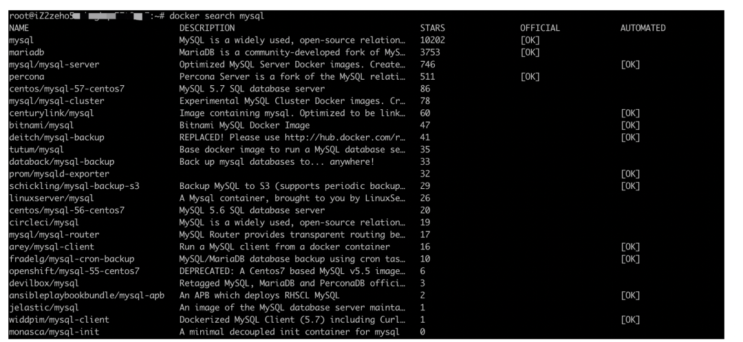 docker search mysql 实际上是去https://hub.docker.com/ 搜索的,