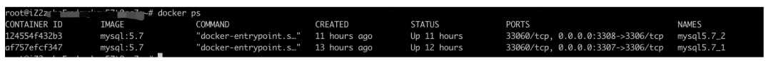 重启两台mysql容器,命令:docker restart 容器id或名称