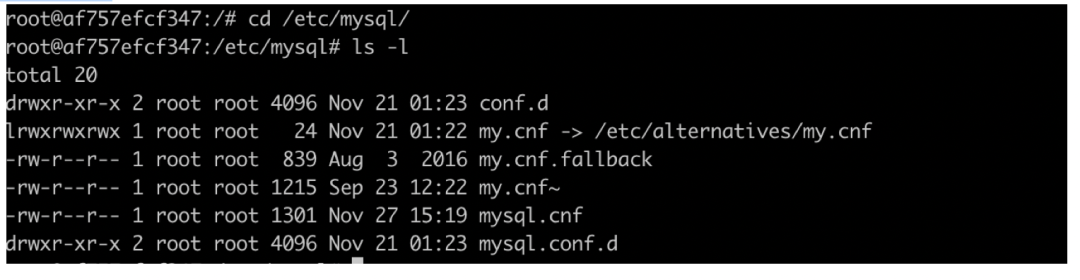 docker cp mysql.cnf a1c7de8adce4:/etc/mysql/