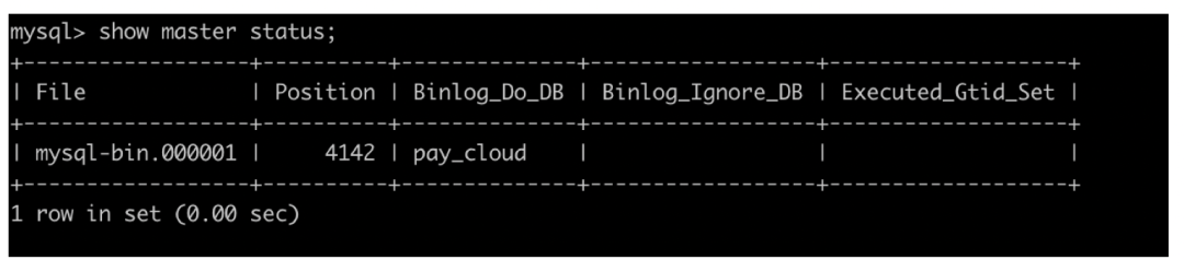 验证主从同步结果:我们配置了主从同步的库是 pay_cloud,故我们可以在master mysql中新创建数据库pay_cloud: