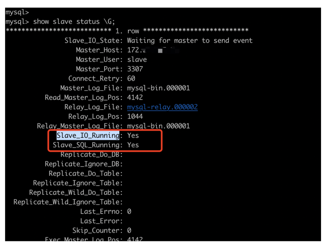 master_port:Master的端口号,因为用的是docker中的mysql,所以这里指的是宿主机映射到到mysql容器的端口