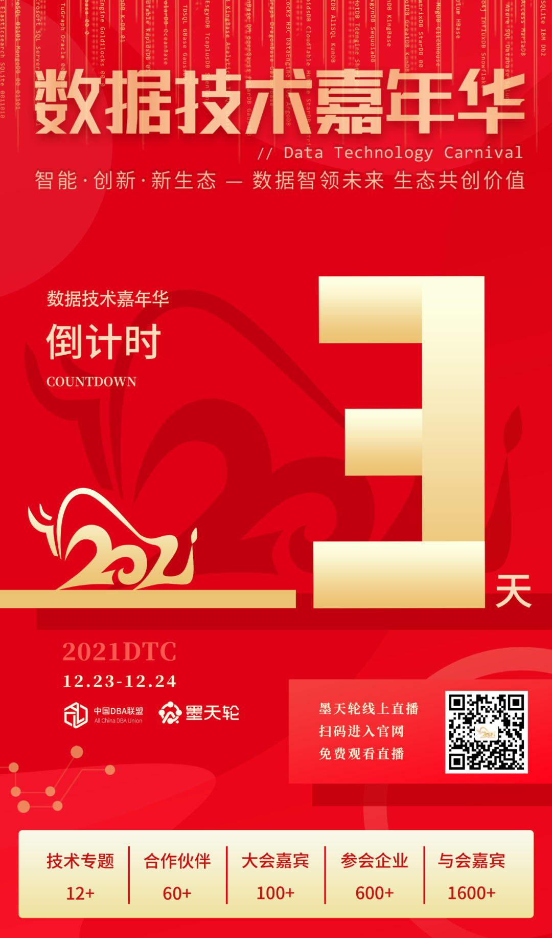 12月23-24日,2021数据技术嘉年华(DTC)将通过墨天轮社区线上举办。围绕“智能·创新·新生态——数据智领未来 生态共创价值”这一主题,来自数据领域的领军人物、学术精英、技术专家、行业实践者、生态布道者将带来超过60场主题演讲。想不想提前了解他们如何看待行业发展现状?最想跟大家探讨哪些新技术?对未来技术发展趋势有什么看法?针对大家感兴趣的问题,组委会将带来大会演讲嘉宾系列采访。还在等什么?精彩提前看起来!