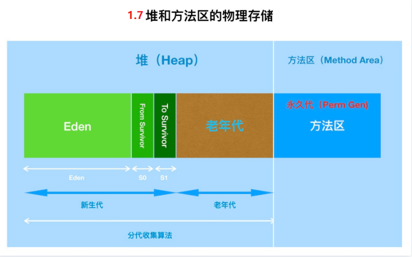 Java7及以前版本方法区位于永久代中。同时,永久代和堆是相互隔离的,但它们使用的物理内存是连续的。