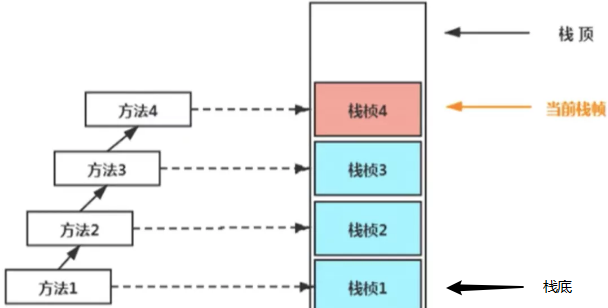 每个线程只有一 个活动栈帧(栈顶的栈帧),对应着正在执行的代码