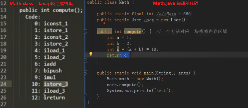 可以看到Math.java代码反汇编后的信息是一些JVM指令。