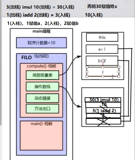 操作数栈:一个后进先出(FILO)的操作数栈,主要用于保存计算过程的中间结果,同时作为计算过程中变量临时的存储空间。