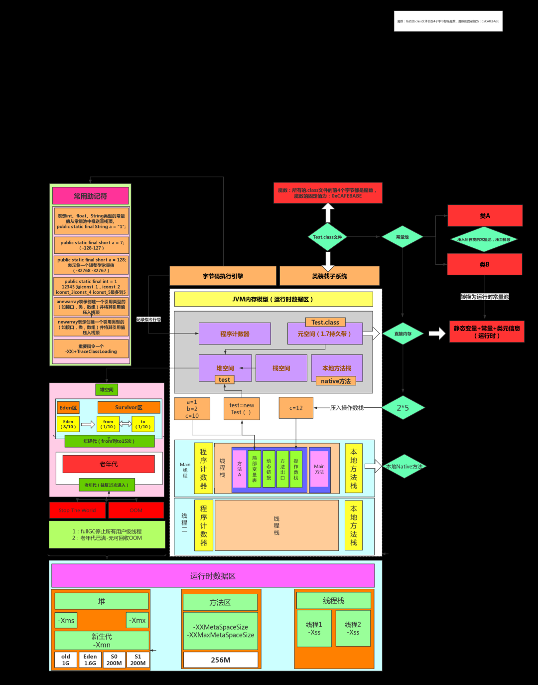 | 运行时常量池 | 方法区的一部分 | 字面量及符号引用 |