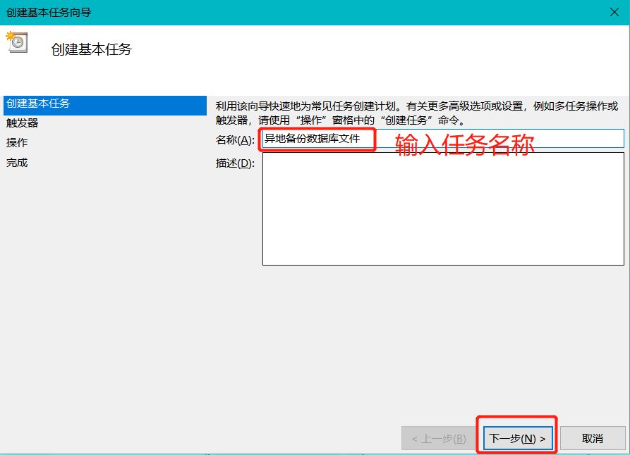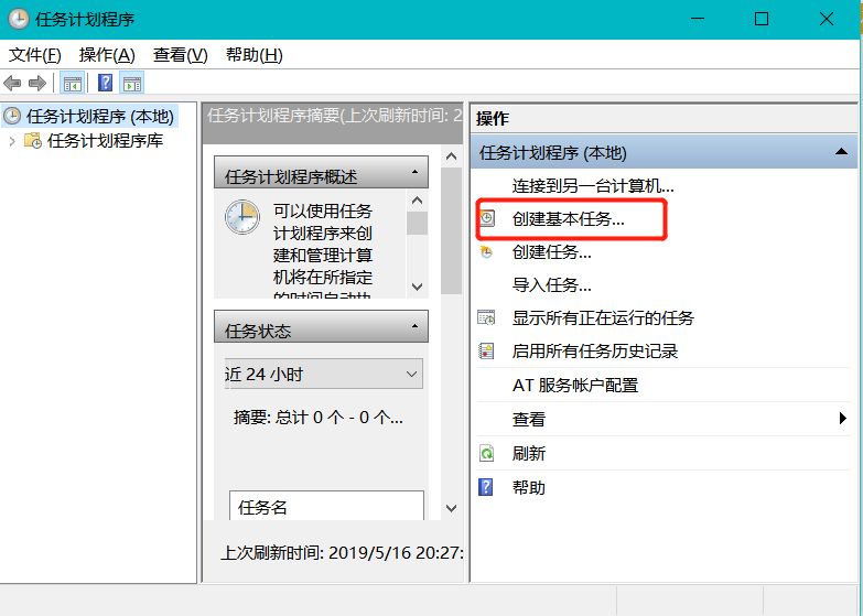 前面的"C:\Program Files\WinRAR\WinRAR.exe" 是WinRAR的安装路径。上面的这段命令的整体作用就是将存放在服务器D:\Backup的数据文件,通过打包的方式传输到目标位置Z:\中,也就是另外一台服务器。点击"控制面板"——"管理工具"——"任务计划程序",开始设置定时执行任务。在弹出的对话框中,选择"创建基本任务..."