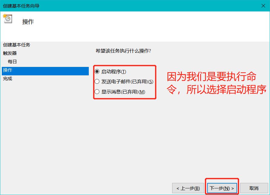 点击下一步后设置触发器,根据备份频率进行选择,这里我们选择每天。点击下一步,因为我们是要执行命令,所以这里选择启动程序:这样以后每天的20:32分就开始执行这个bat文件。具体每天的什么时刻执行可以在触发器那里设置。我们直接双击一下这个bat文件就完成了一次异地备份。这样整个异地自动备份的任务就完成了,我们简单的回顾一下我们具体做了什么。首先建立一个网络驱动器,然后写了一段打包压缩到驱动器上的代码,最后设置了一个定时执行任务,就这么简单。有需要的同学不妨动手试一下,当然如果你有更好的办法也不妨分享给大家,这里会非常欢迎的。后台回复关键字:资料领取,获取一份精心整理的技术干货