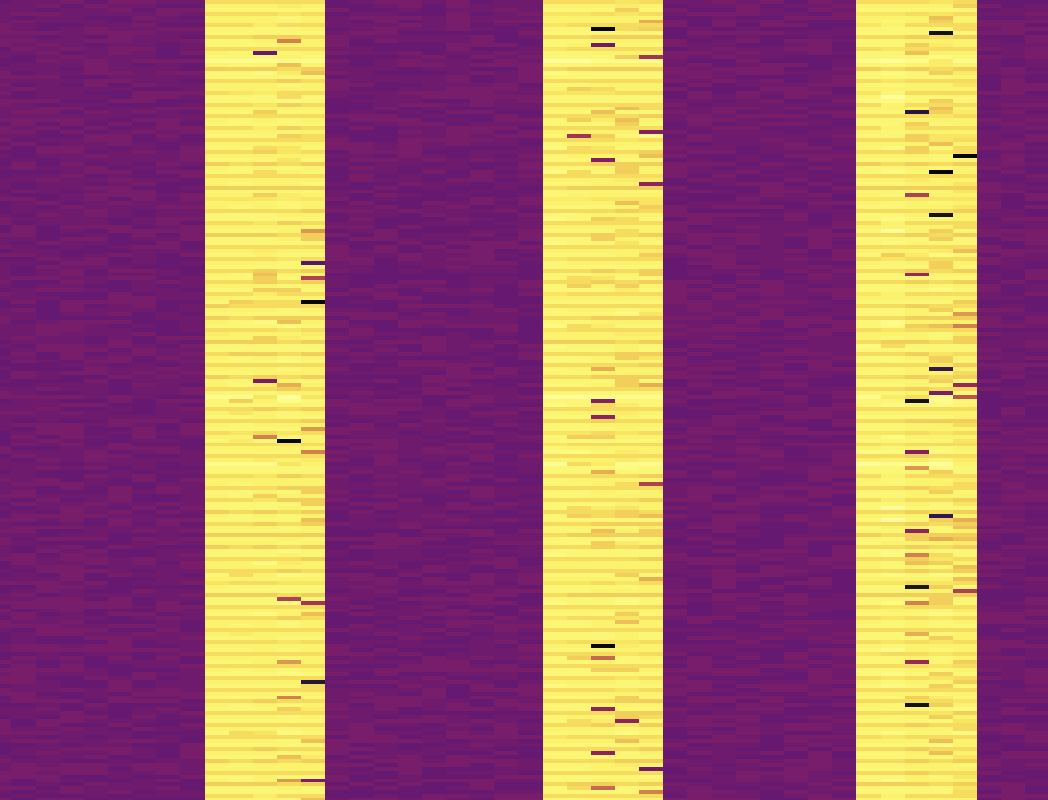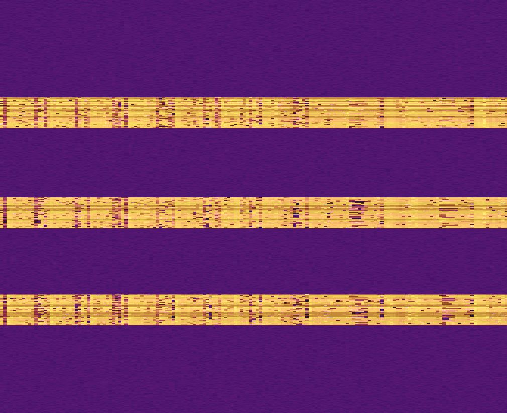 如图所示,热力图在 X 轴(时间)上表现出明暗交替,但 Y 轴(Region)则比较均匀,说明读取或写入负载具有周期性的变化。这种情况可能出现在周期性的定时任务场景,如大数据平台每天定时从 TiDB 中抽取数据。一般来说可以关注一下使用高峰时期资源是否充裕。