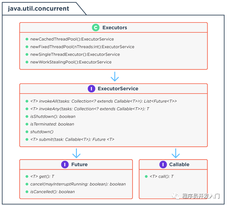 ExecutorService是Executor的子接口,该接口中包含了线程池常用的一些方法