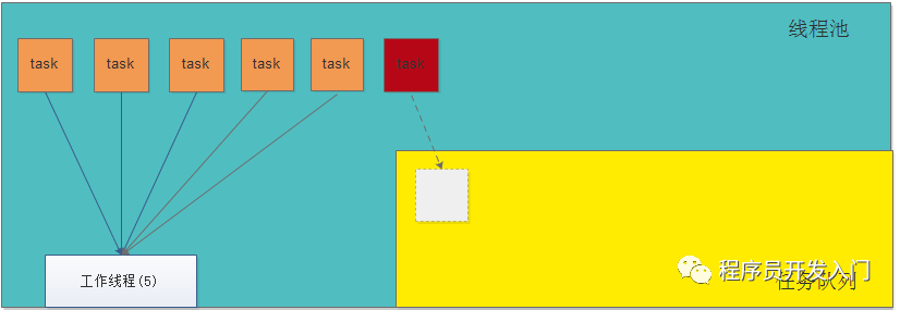 3.2 如果当前线程池中的线程数目>=corePoolSize,则每来一个任务,会尝试将其添加到任务缓存队列当中