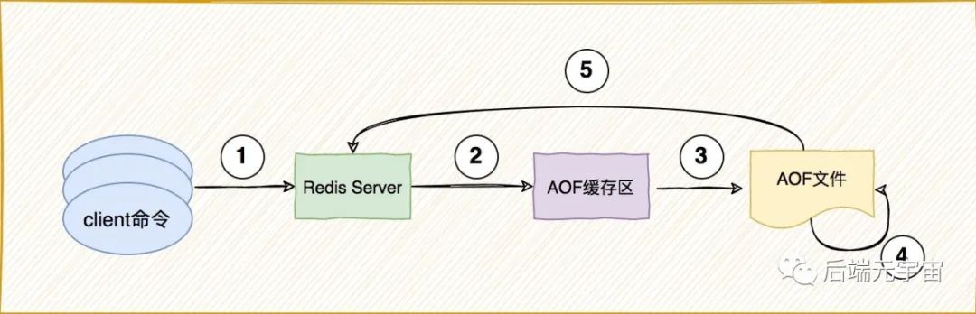 上面提到了AOF持久化的过程就是日志不断追加的过程,这里通过图 给大家介绍具体流程: