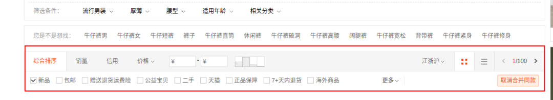 第2步:在淘宝搜索页面中进行一次搜索,可以做任意筛选,如价格、发货地、新品、类目、综合排序或按销量排序等。