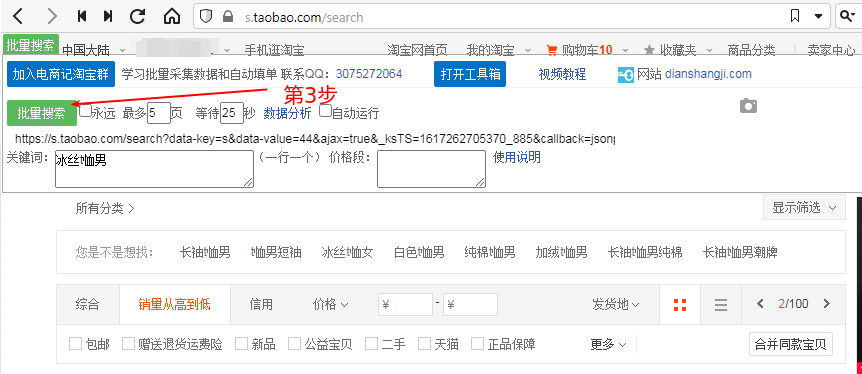 第6步:刷新淘宝搜索页面后,打开“批量搜索”。