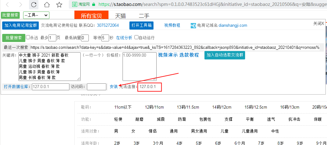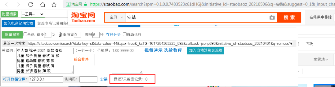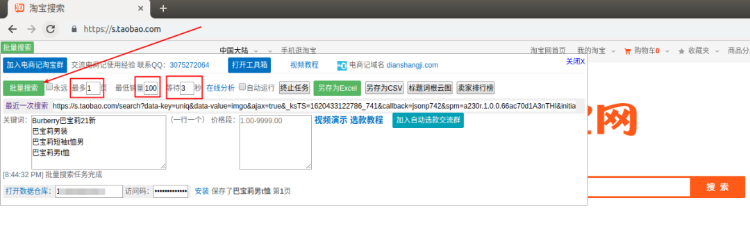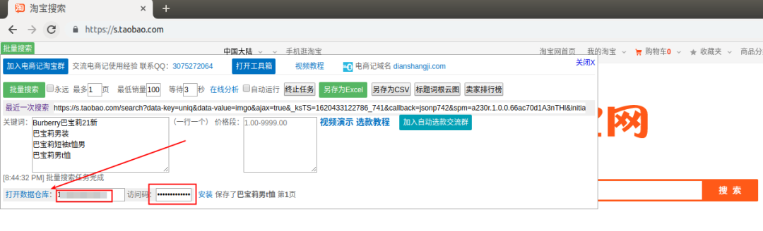 当数据仓库正常工作时,“批量搜索”采集的数据会自动导入到本地的淘宝搜索数据库中。