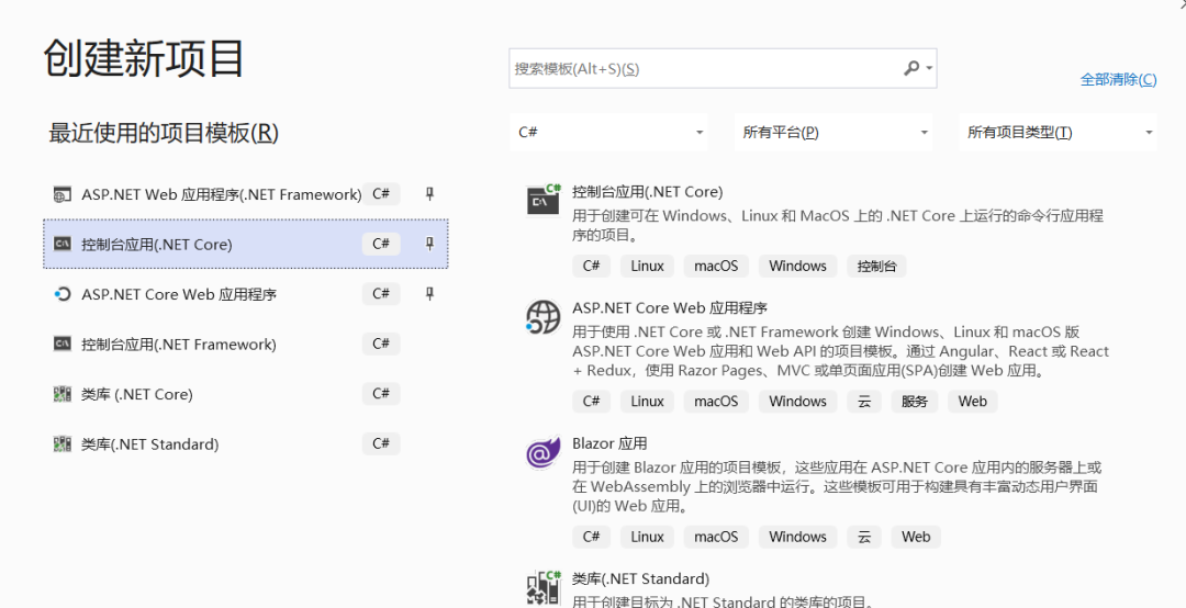 打开vs2019,创建NetCore的控制台应用程序
