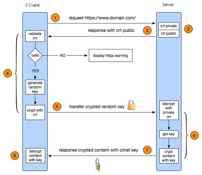 大白继续说到:“客户端产生一个随机数,使用公钥加密,发给服务端,服务端使用私钥解密取得这个随机数,再根据这个随机数和其他信息计算出一个 key,就作为后续加密内容使用的密钥了!”