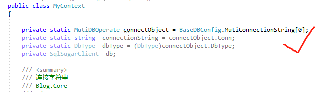 namespace Blog.Core.Common.DB{public static class MainDb{// 这个id,就是我们配置文件的idpublic static string CurrentDbConnId = "1";}}