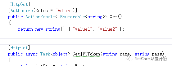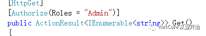 [HttpGet][Authorize(Policy = "SystemOrAdmin")]public ActionResult<IEnumerable<string>> Get(){return new string[] { "value1", "value2" };}