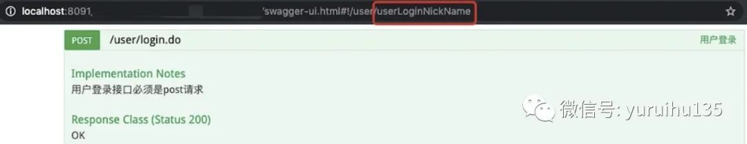 第 1 行,我们在 userLogin 方法的上方使用了 @ApiOperation 注解的 nickname 属性来为接口起一个别名。