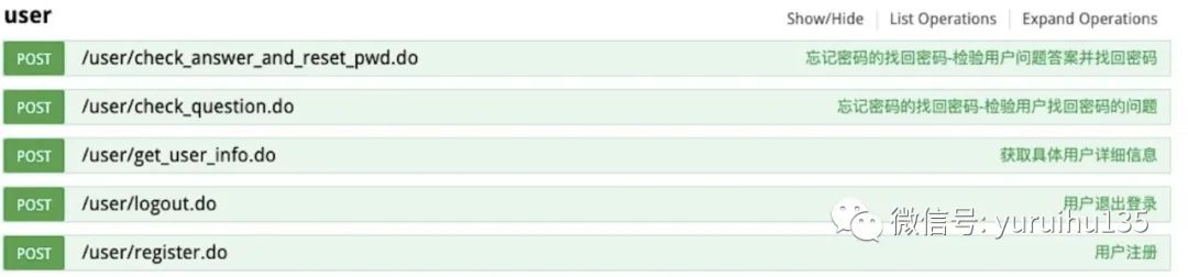 可以看到在接口列表界面,已经看不到我们的用户登录接口了,这就是当 hidden 属性设置为 true 时所起的作用。