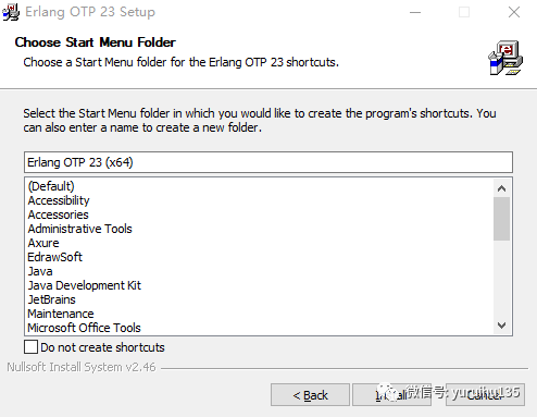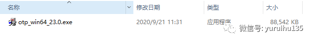 我们点击最新版本的 OTP 23.0 ,如上图红框处所示,即可开始下载,因为是从国外下载文件包,所以网速可能会有些慢,我们缓慢等待一会就好了。在下载好之后,我们会得到一个 .exe 的可执行文件,如下图所示: